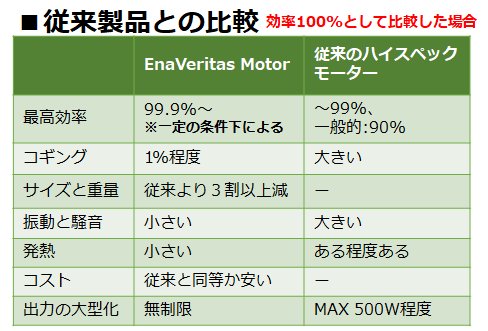 EnaVeritas Motor(Vector Repulsion Motor)は、コギングトルクを99%除去することで超高効率と小型化を実現した新技術モーターです。これにより振動・騒音を抑え、起動・停止も高速化しました。